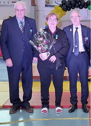 Le Président DUPUIS a remis la médaille de Bronze des Médaillés, de la Jeunesse, des Sports et de l’Engagement Associatif à Madame LAMARQUE Maryse, Présidente de l’Association Sportive Gymnique d’ÉCOUFLANT depuis 26 années.