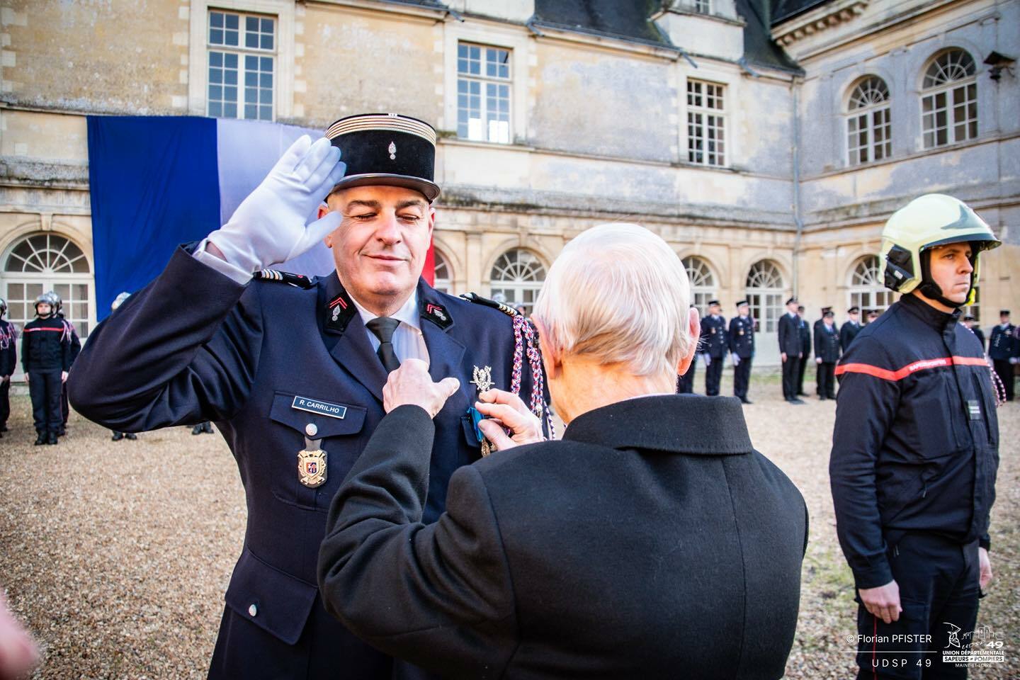 À cette occasion, le Lieutenant-Colonel Ricardo CARRILHO a reçu des mains de Noël BLEU la médaille de bronze de la Jeunesse, des Sports et de l’Engagement associatif, en reconnaissance de son engagement au sein de l’Union Départementale des Sapeurs-Pompiers de Maine-et-Loire (2ᵉ vice-président) et de son action en faveur de la formation des Jeunes Sapeurs-Pompiers ![]()